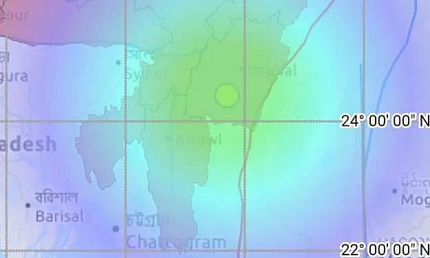 According to reports, the earthquake occurred at 8:18 pm in the evening at Latitude :24.4 North and Longitude: 93.7 East at a depth of 40 kilometres.