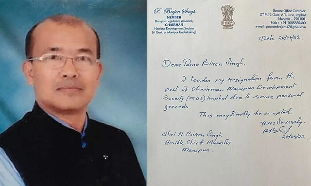 IMPHAL: Bharatiya Janata Party MLA Paonam Brojen Singh from Wangjing Tentha Assembly Constituency on Thursday tendered his resignation from the post of Chairman of Manipur Development Society. He is the third BJP MLA to resign from the administrative post. The reason for his resignation was cited as 'personal grounds'.