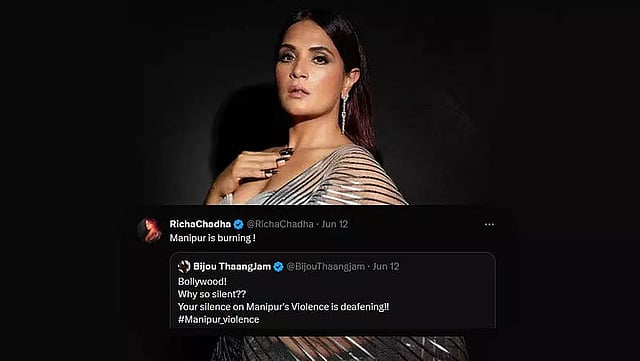 IMPHAL: Bollywood actress Richa Chadha has expressed concern about the recent acts of violence in Manipur. Taking on twitter, Richa shared a post of Bijou Thaangjam and captioned it as “Manipur is burning!”