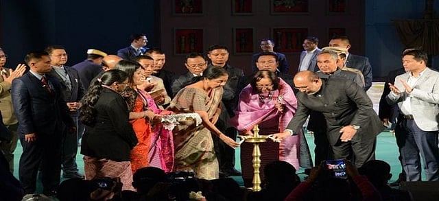 Guwahati: Union Minister for Defence, Nirmala Sitharaman on Wednesday inaugurated the annual 10-day Manipur Sangai Festival-2018 at Hafta Kangjeibung in Imphal. Sitharaman inaugurated the festival at the function held at Bheigyachandra Open Air Theatre located near Hafta Kangjeibung by lighting the ceremonial lamp.