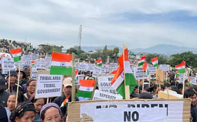 IMPHAL: Thousands of Kuki-Zo tribals on Wednesday organized mega rallies in Mizoram, Tripura, Delhi, Karnataka, and Tamil Nadu, besides different districts in Manipur to highlight their main demand for ‘separate administrations’ (equivalent to separate state) for the tribals in Manipur. The rally was organized under the aegis of Zo United, a civil society organisation and parent body for all Kuki-Zo tribes in Manipur. Ten Manipur tribal MLAs, including seven from the ruling BJP, who have been demanding a ‘separate administrations’ for the tribals in the state since the ethnic riots began in the state on May 3, also participated in the rallies.