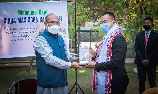 MANIPUR: Manipur Chief Minister N Biren Singh felicitated Captain Soiba Maningba Rangnamei from the Senapati district for showing exemplary courage during the clashes with Chinese troopers of the People's Liberation Army (PLA) at the Galwan Valley in June 2020.