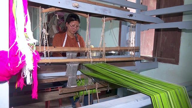 “We work here making traditional clothes. It takes one to two days to weave a piece of fabric, which requires a lot of effort. We make clothes for both women and men. Prices start around three thousand rupees and increase if more fabric is used or if the work is more intricate,” says Thinglung Lio, a handicraft artist.