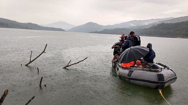 The team will join the NDRF team and civil authorities in locating three missing personnel. The naval diving team is carrying necessary diving equipment including portable side scan sonar for locating objects underwater and commenced search operation today. Two boats with 12 picnickers on board had sank at Mapithel Dam and three of them could not be traced.