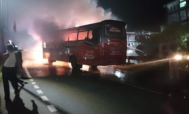 The rider was on a KTM Duke motorcycle (ML 05 Y3698) when it collided head-on with a Night Bus (AS 01GC3288) traveling from Guwahati to Shillong. According to police officials, the motorcycle was coming from the wrong side at the time of the crash. Police said the impact caused the vehicle to catch fire and burn completely, and the unidentified bike rider died on the spot.