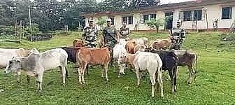 SHILLONG: Border Security Force (BSF) personnel in Meghalaya rescued 88 cattle from allegedly being smuggled into Bangladesh through the international border in the East Khasi Hills district of the state. Acting on a tip-off, vigilant troops of 110 Bn BSF Meghalaya confiscated 58 buffaloes brutally crammed into two trucks from Ichamati- Shela Road, East Khasi Hills, on Saturday, BSF Meghalaya stated. "These buffaloes were being taken to the international border for smuggling to Bangladesh," BSF Meghalaya further said. The seized cattle and vehicles have been handed over to the concerned Police station for further legal action.