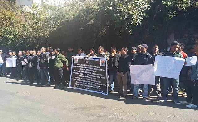 SHILLONG: Leader and members of 14 pressure groups from Khasi and Jaintia Hills under the banner of Confederation of Hynniewtrep Social Organization (CoHSO) today staged a surprise protest outside the office of Bharatya Janata Party (BJP) Meghalaya at Road, Shillong.