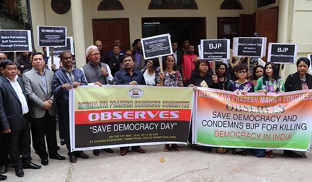 SHILLONG, May 18: The Meghalaya Pradesh Congress Committee (MPCC) on Friday staged a protest at the Congress Bhawan against the action of the Karnataka Governor and to protest the style of functioning of the BJP Government.