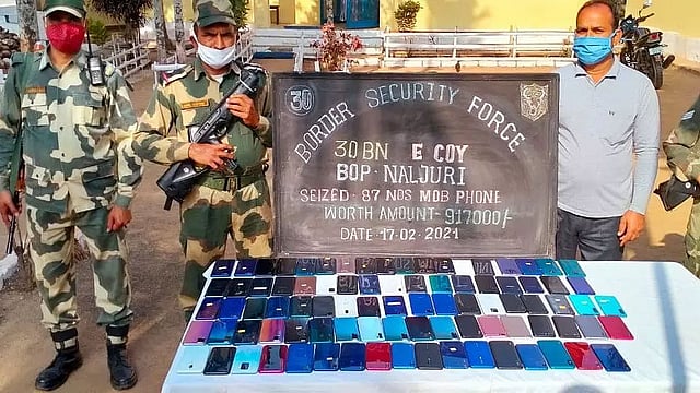 Acting on specific input, the troops launched a special ambush in the border area of BOP Naljuri, under West Jaintia Hills. The ambush party observed that some people carrying sacks on their head were moving towards the international border. Immediately, the party challenged the miscreants. However, they managed to escape leaving behind their sacks. Searching the area, BSF troops recovered 87 smartphones. The market price of confiscated mobiles has been assessed at Rs 9,17,000, stated a release.