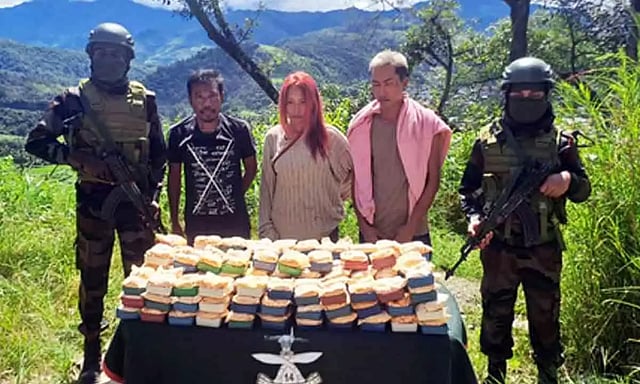 The paramilitary troops noticed three individuals in the area suspiciously searching for something. The individuals, including the woman were apprehended while attempting to pick up a concealed package. A thorough search of the area led to the recovery of 1.377 kilogram of heroin worth approximately Rs 11.40 crores.