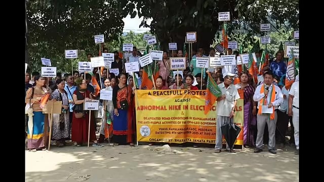 Aizawl: The Bharatiya Janata Party (BJP) organized a protest on Monday in Chawngte, the headquarters of the Chakma Autonomous District Council (CADC), over the recent increase in power tariffs and the worsening condition of roads in the region.