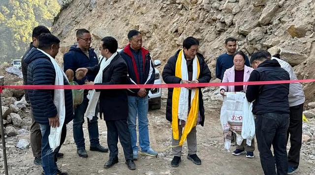 After the fallout from the catastrophic Glacial Lake Outburst Flood (GLOF) that happened on the night between October 3 and October 4, 2023 witnessed by North Sikkim, a landslip near Theng Tunnel blocked a vital route that passes through Toong Naga and connects Chungthang and Mangan.