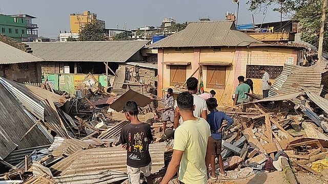 AGARTALA: The Agartala Municipal Corporation (AMC) on Thursday conducted a demolition drive in Lake Chowmuhani Bazar targeting temporary shops that were illegally built on the road. The affected traders have expressed their grievances, alleging that the administration carried out the eviction without providing any rehabilitation arrangements.