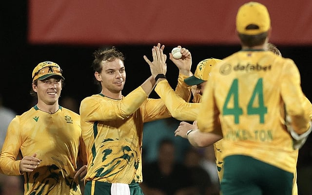 Markram soon followed as Glenn Maxwell baited the skipper into coming down the pitch and was caught by Mitchell Owen. The Australian allrounder claimed his second of the day thanks to solid keeping behind the stumps by Alex Carey, to send Lhuan-dre Pretorius (10) packing.