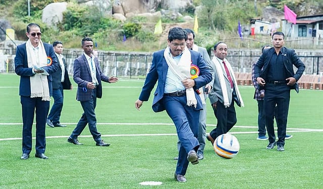 SHILLONG: In a significant push to sports development and youth empowerment, Meghalaya Chief Minister Conrad K. Sangma on Thursday inaugurated the newly constructed Synthetic Football Turf at Madan Centre Playground, Kharbuli, Nongkrem, in East Khasi Hills, in the presence of Sports Minister Wailadmiki Shylla.