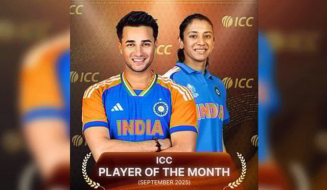 New Delhi: India duo of Abhishek Sharma and Smriti Mandhana have been named ICC Players of the Month for September. Abhishek, 25, was rewarded for his explosive run in the Asia Cup, where he amassed 314 runs in seven matches at an average of 44.85 and a blistering strike-rate of 200.