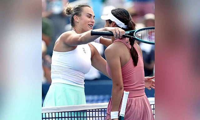 Cincinnati: Aryna Sabalenka’s Cincinnati title defense stayed alive after a marathon win 7-6 (3), 4-6, 7-6 (5) over Emma Raducanu.