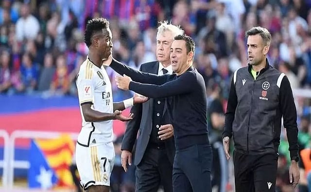 The Brazilian winger also had a clash at the beginning of the match with Barcelona boss Xavi over a challenge on him by his defender Ronald Araujo.