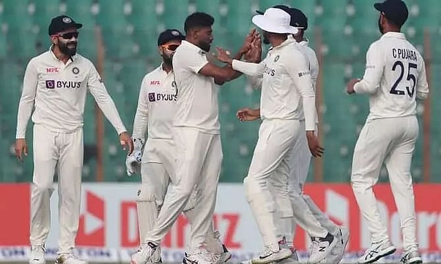 Siraj rocked Bangladesh by dismissing Najmul Hossain Shanto on the first ball of the innings, as keeper Rishabh Pant took a diving catch to his left. Umesh Yadav uprooted Yasir Ali's leg stump when the batter's feet didn't move and inside-edged to his stumps.