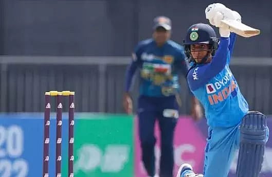 Electing to bowl first, Sri Lanka had early success as Smriti and Shafali holed out in the deep in the first four overs. Jemimah took time before driving Sugandika Kumari for a brace of fours in the final over of powerplay.