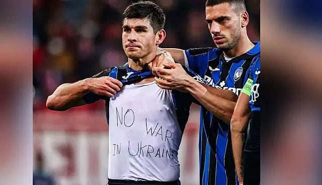 LONDON: Serie A club Atalanta's star midfielder Ruslan Malinovskyi made a powerful statement against Russia's invasion of his country when he revealed a 'No war in Ukraine' T-shirt message after scoring against Olympiakos Piraeus during a Europa League round-of-32 second-leg match in Greece.