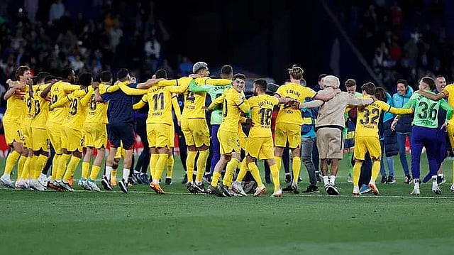 MADRID: FC Barcelona clinched the La Liga title with four games left this season, thanks to a 4-2 win away against local rivals Espanyol on Sunday night.