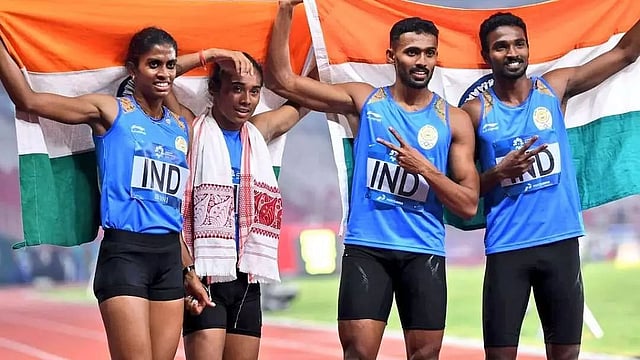 The 4x400m mixed relay team of Mohammed Anas, M.R. Poovamma, Hima Das and Arokia Rajiv had finished in 3:15.71 after Hima Das was obstructed by Oluwakemi Adekoya, who was sprawling on the track after the second baton exchange. India now is the first winner of the event introduced in the Asian Games in 2018 in keeping with the international bid to find gender balance.