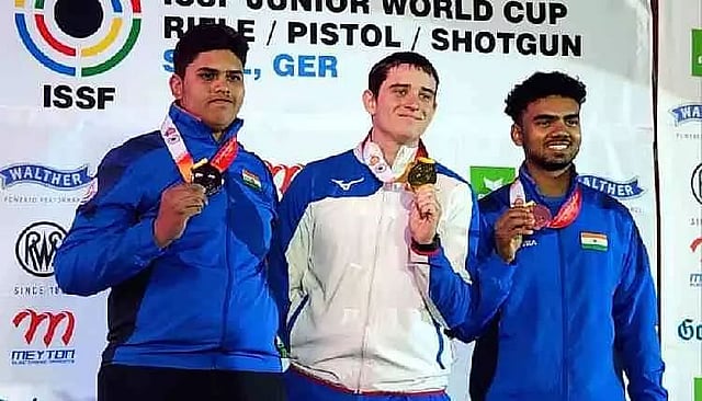 SUHL: The Indian trio of Sameer, Rajkanwar Singh Sandhu and Jatin won the team silver in the mens 25m Rapid Fire Pistol (RFP) event on the penultimate day of the ISSF Junior World Cup, here on Wednesday.