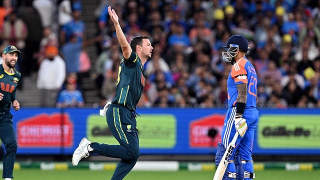 Melbourne: Josh Hazlewood dismantled India’s top order with a sensational 3-13 while skipper Mitchell Marsh hit a brisk 46 as Australia secured a four-wicket win over India in the second T20I at the Melbourne Cricket Ground on Friday, and took a 1-0 lead in the five-match series.