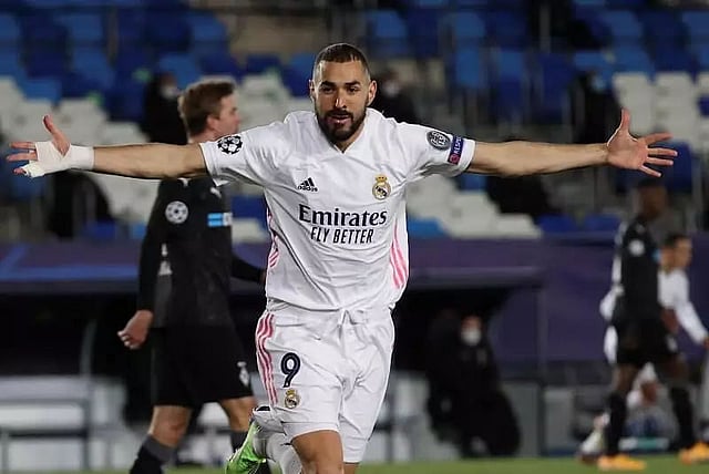 Benzema ghosted into the area unmarked to head home a floated cross from Lucas Vazquez in the ninth minute and rose again to score in the 32nd, this time powering a cross from Rodrygo through the hands of Swiss keeper Yann Sommer.