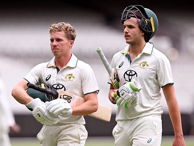 Konstas scored a brilliant century, finishing with 109 off 144 balls, while Kellaway made 88 off 97 deliveries. Harsh Dubey provided India with their first breakthrough, though late, when he dismissed Kellaway in the 38th over. The 19-year-old Konstas struck 10 boundaries and three maximums during his 144-ball stay at the crease, sharing a 198-run partnership with Kellaway, whose knock of 88 was studded with ten fours and two sixes. The Indian bowlers then took three more wickets in the following 10 overs as Konstas, Nathan McSweeney, and Oliver Peake followed Kellaway to the pavilion.