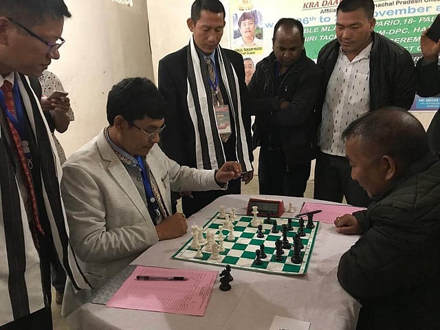 PALIN: MLA of 18 Palin Chambang constituency Takam Pario on Monday declared the 2nd District Level Chess Tournament of Kra Daadi District open amidst the participants along with the DPC of the district Biri Tach at new palin.
