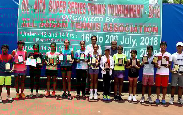 GUWAHATI, July 20: 5th seed Jigyashman Hazarika of Assam lifted the boys U-12 singles title in the OIL – AITA Super Series Tennis Championship which concluded at the Chachal tennis complex here today. In the final he defeated 2nd seed Harsh Fogaat of Delhi 6-3, 6-2. Manipur boy Bushan Haobam bagged the boys U-14 singles crown by defeating Yuvan Nandal of Haryana 6-2, 2-1. Nandal conceded the match. The U-14 boys doubles crown was lifted by Ayush P Bhat (KAR) and Anchit Gogoi (AS).