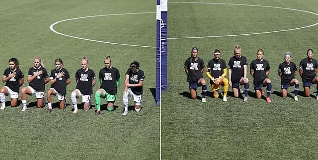 Portland Thorns and North Carolina Courage players took a knee showing their