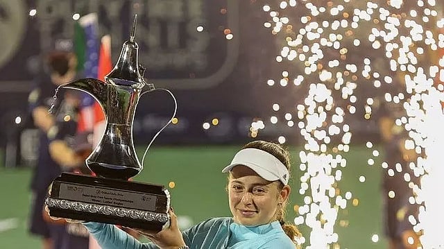 DUBAI: Latvian former French Open singles champion Jelena Ostapenko stormed to the Dubai Duty Free Tennis Championships title, dispatching Veronika Kudermetova of Russia 6-0, 6-4 for her fifth career crown.
