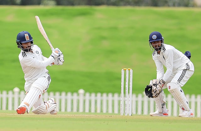 But the arrival of Patidar changed the complexion of the game. The Central skipper settled quickly, driving Koushik crisply and rotating strike with Rathod. He reached his half-century off 72 balls, mixing patience with controlled aggression.