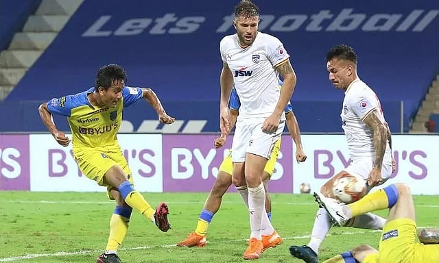 Bengaluru promptly punished them for not making the most of their opportunities. Rahul Bheke's long throw from the right was not properly dealt with by the Kerala defence and it fell to Cleiton, whose acrobatic volley gave Kerala goalkeeper Albino Gomes no chance.