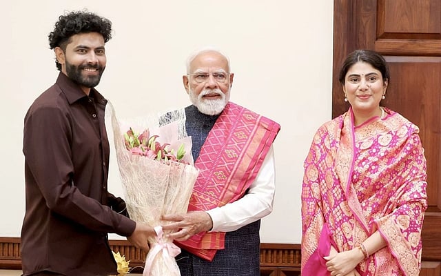New Delhi: India all-rounder Ravindra Jadeja, accompanied by his wife Rivaba Jadeja, Gujarat’s Minister for Tribal Development, Primary, Secondary, and Adult Education, met Prime Minister Narendra Modi at the Parliament House in New Delhi on Tuesday.
