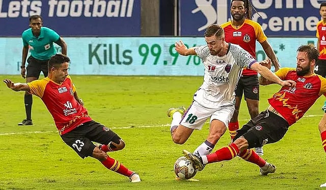 Chances also fell Odisha's way but stunning back-to-back saves from goalkeeper Debjit Majumder helped East Bengal keep their lead intact during the first quarter. The custodian first parried away Manuel Onwu's header and minutes later, denied Mauricio.