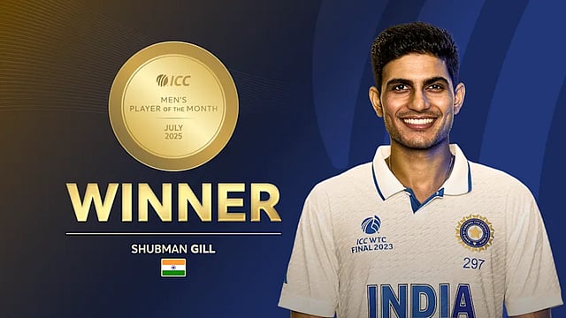 Dubai: India Test captain Shubman Gill and England spinner Sophia Dunkley have been named the ICC men's and women's Player of the Month for July, respectively. Gill has landed the Player of the Month award after a stiff competition from England Test skipper Ben Stokes and South African all-rounder Wiaan Mulder. This is his fourth Player of the Month honour, having won previously in February this year and in January and September 2023.