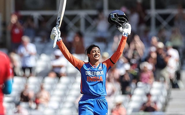 Shafali's dismissal did not deter Mandhana as the left-hander raised a further 94 runs for the second wicket with an equally aggressive Harleen, who was dropped on 26 by Danny Wyatt-Hodge off off-spinner Alice Capsey near mid-wicket.