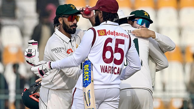 Multan: Sajid Khan and Abrar Ahmed wreaked havoc with the ball taking nine wickets combined for 77 runs to help Pakistan defend the 251-run target as the hosts took a 1-0 lead over the West Indies here at the Multan Cricket Stadium on Sunday.