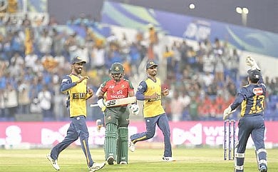 Abu Dhabi: Sri Lanka thrashed Bangladesh by 6 wickets in a vital Group B match of the Asia Cup at Sheikh Zayed Cricket Stadium on Saturday night.