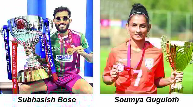 Bhubaneswar : Mohun Bagan Super Giant’s Subhasish Bose and East Bengal’s Soumya Guguloth were honoured with the All India Football Federation’s (AIFF) prestigious Men’s and Women’s Player of the Year awards for the 2024-25 season, held in Bhubaneswar on Friday.