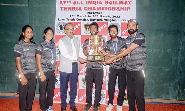 Guwahati: The 67th All India Railway Tennis Championship 2021-22, organized by the Northeast Frontier Railway Sports Association (NFRSA), concluded today. General Manager (NFR) Anshul Gupta and General Manager (Construction,NFR) Sunil Sharma attended the closing function and also distributed the prizes.