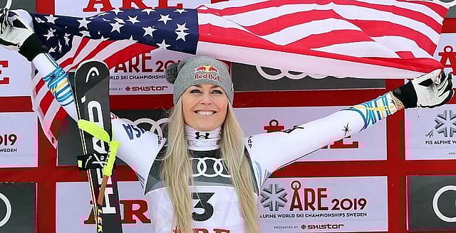 Lindsey Caroline Vonn (born October 18, 1984) is an American former World Cup alpine ski racer on the US Ski Team. She won four World Cup overall championships—one of only two female skiers to do so, along with Annemarie Moser-Proll—with three consecutive titles in 2008, 2009, and 2010, plus another in 2012. Vonn won the gold medal in downhill at the 2010 Winter Olympics, the first one for an American woman. She also won a record eight World Cup season titles in the downhill discipline (2008–2013, 2015, 2016), five titles in super-G (2009–2012, 2015), and three consecutive titles in the combined (2010–2012). In 2016, she won her 20th World Cup crystal globe title, the overall record for men or women, surpassing Ingemar Stenmark of Sweden, who won 19 globes from 1975 to 1984. She has the second highest super ranking of all skiers, men or women.