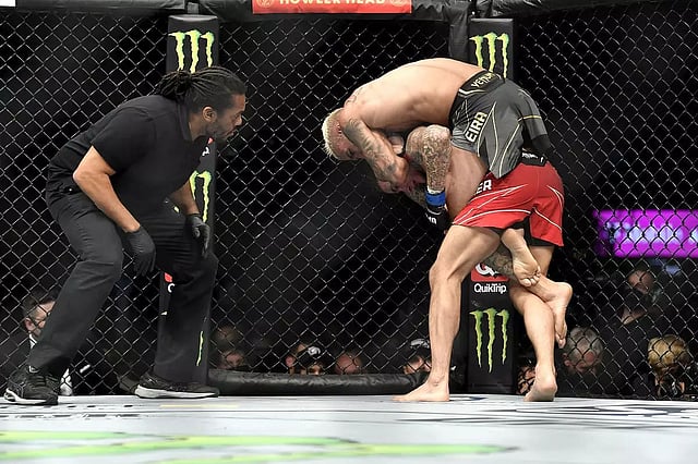 The first round was a breathtaking affair, as Poirier landed the heaviest shots. But Olivera landed repeatedly both front kicks and knees to the torso. The effects of those kicks took hold in the second, as Oliveira tripped Poirier and ended up in top position, where he rained down heavy elbows over the course of several minutes.