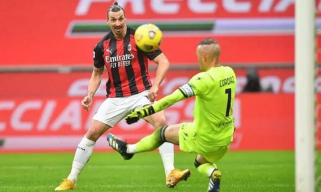 MILAN: Zlatan Ibrahimovic scored the 500th club goal of his career and added a second as AC Milan reclaimed the top spot in Serie A with a 4-0 win over bottom side Crotone on Sunday.