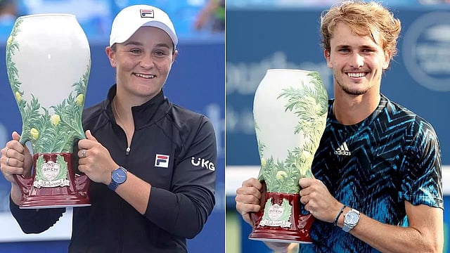 Women's world number one Ashleigh Barty was similarly impressive in winning her fifth title of the season at the combined ATP and WTA event, cruising past Swiss wild card Jil Teichmann 6-3, 6-1.