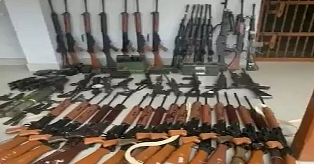 Among the surrendered weapons include SLR 29, Carbine, AK, INSAS Rifle, INSAS LMG, .303 Rifle, 9mm pistol, .32 pistol, M16 rifle, smoke gun and tear gas, local made pistol, stan gun, modified rifle, JVP and a grenade launcher, the Manipur Police said.